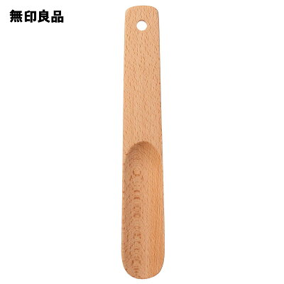 木を削り出したナチュラルな靴べら。こちらも無印らしいシンプルなデザインです。